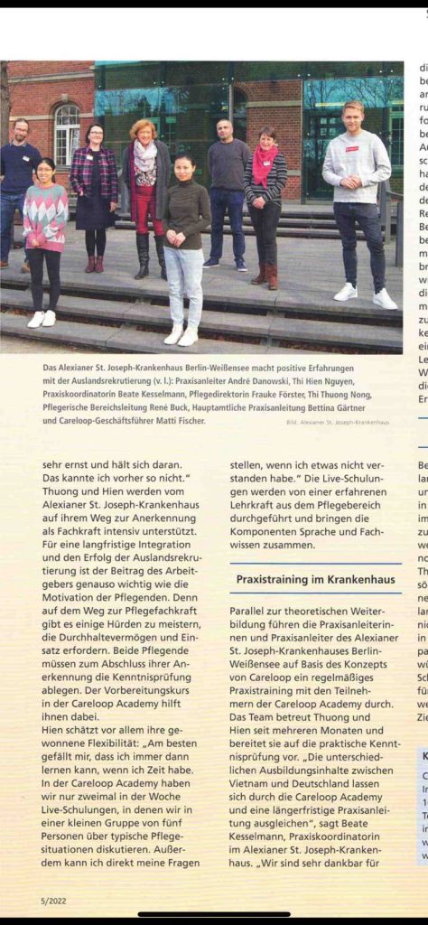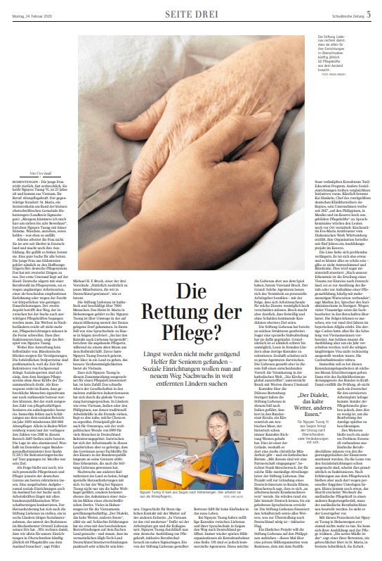 Vũ Tiến Linh – học sinh CMMB du học nghề điều dưỡng năm 2020 lên báo Schwäbisch