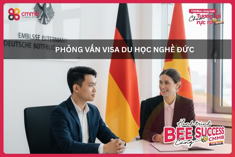 Phỏng vấn xin visa du học nghề Đức là bước quan trọng quyết định cơ hội sang Đức học và làm việc. Buổi phỏng vấn giúp Đại sứ quán đánh giá khả năng tiếng Đức, động lực học nghề và định hướng tương lai của bạn. Theo kinh nghiệm từ CMMB Việt Nam, ứng viên có chứng chỉ B2 tiếng Đức thường đạt kết quả cao hơn nhờ giao tiếp tự tin, thể hiện tốt năng lực và sự chuẩn bị nghiêm túc cho hành trình du học nghề tại Đức.