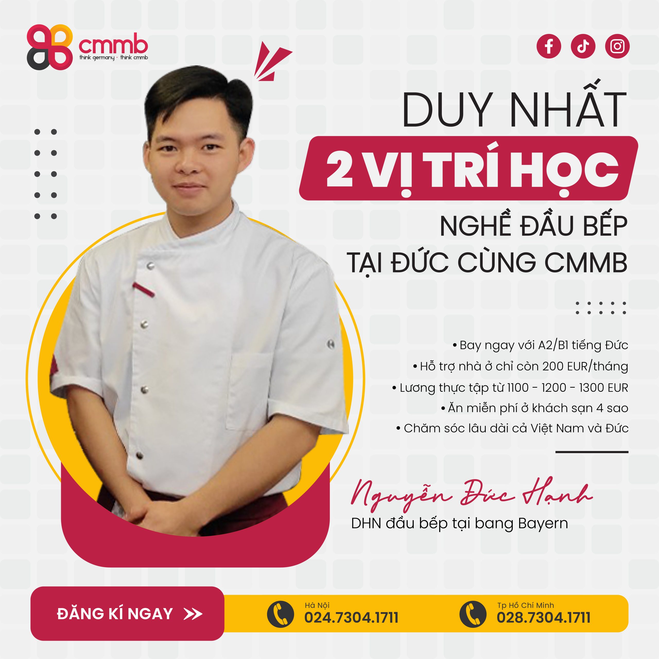 CMMB Việt Nam tự hào với chương trình hợp tác với những đối tác nhà hàng khách sạn xịn nhất tại Đức thông qua các suất học đặc biệt.của năm 2024. Hãy liên tục cập nhật thông tin qua Hotline, trang web, facebook, tiktok của CMMB nhé!
